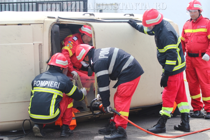 Tot în cadrul exerciţiului, cei de la Descarcerare au salvat un bărbat care fusese implicat într-un accident rutier.