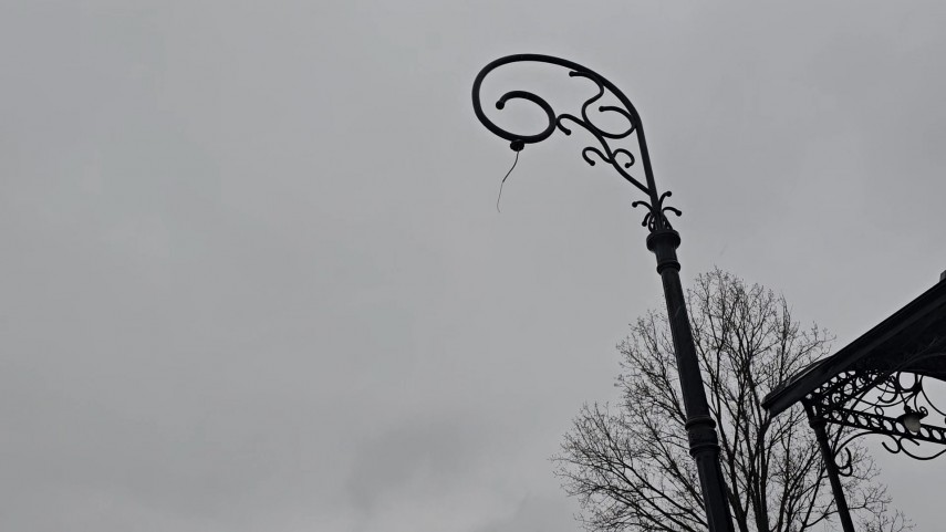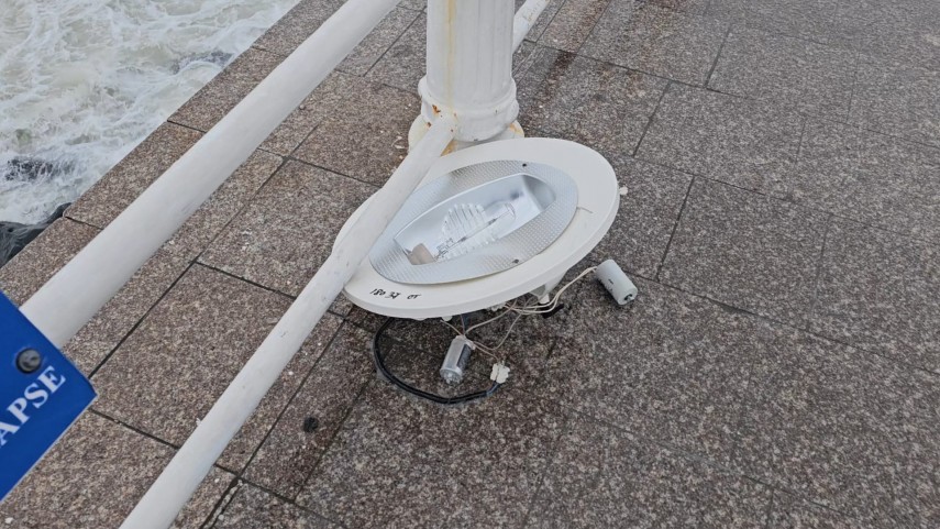 După cum se poate observa și în imagini, vântul intens a smuls partea superioară a lămpii, care a căzut pe trotuar, în apropierea balustradei.