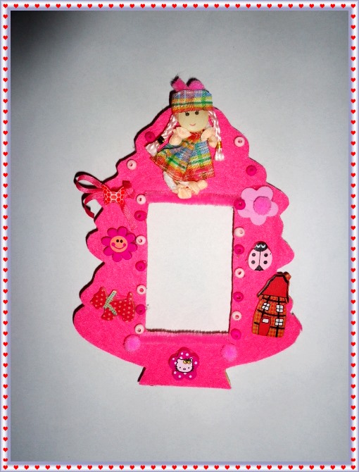 Rama ,,Kitty" - realizata pe o rama din lemn si decorata cu fetru si figurine.