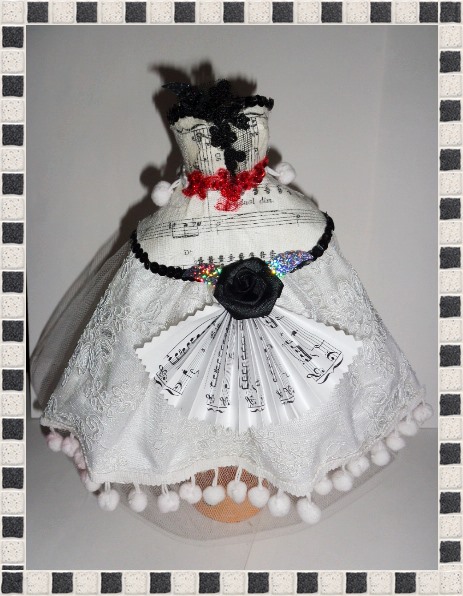 Pentru saptamana aceasta va prezint un mini manechin realizat din carton si partituri muzicale, impreuna cu tulle si cu alte elemente de pasmanterie.