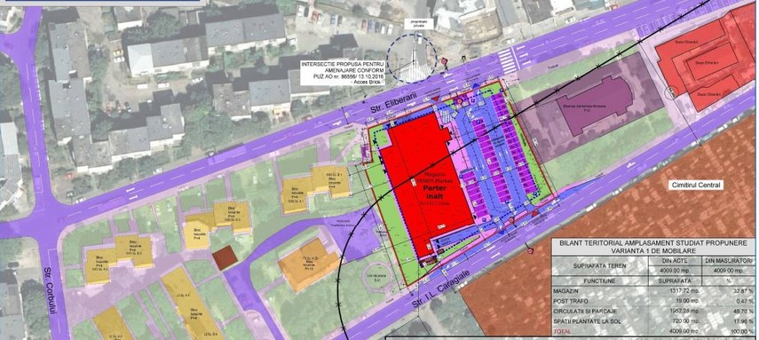 Reamintim că, în luna mai 2017, Comisia tehnică de urbanism şi amenajarea teritoriului din cadrul Primăriei Constanţa a analizat solicitarea emiterii avizului de oportunitate - elaborare PUZ pentru zona intersecţiei strada I.L. Caragiale cu strada Eliberării, lot 1, iniţiator - SC Rewe Projektentwicklung România SRL. Accesul auto la amplasament se va realiza din strada I.L. Caragiale şi din strada Dezrobirii.Conform utilizărilor funcţionale admise de PUG-ul municipiului Constanţa, amplasamentul situat între zone de locuit (ZRL4 şi ZRL5), zona de culte (ZRF) şi zona Cimitirului Central (ZRG) poate fi utilizat pentru echipamente publice la nivel rezidenţial şi de cartier: creşe, grădiniţe, şcoli primare şi gimnaziale, licee, dispensare urbane ş dispensare policlinice, biblioteci de cartier. Amplasarea unui centru comercial cu mărfuri alimentare şi nealimentare de uz casnic în vecinătatea zonei rezidenţiale, cu acces la arterele de tranzit existente, nu contravine funcţiunilor existente şi admise.