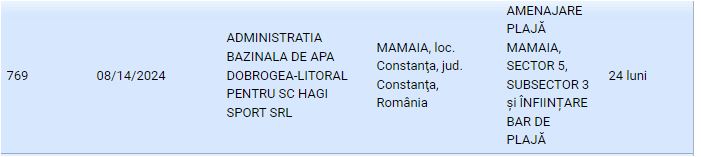 - Administrația Bazinala de Apa Dobrogea-Litoral a solicitat și obținut de la Primăria Constanța un act de urbanism pentru SC Hagi Sport SRL.