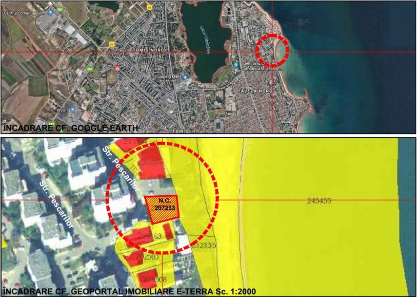 Potrivit documentației depuse la Primăria Constanța, terenul în suprafață de 464 mp, cu număr cadastral 207233, înscris în Cartea funciară a UAT Constanța, este proprietatea lui Dumitru Pufleanu și a Mariei Pufleanu. Suprafața de teren este situată pe strada Pescarilor nr. 35A. Amplasamentul, situat pe strada Pescarilor nr. 35A, zona Faleză Nord, lot nr. 7, careul 673, are următoarele vecinătăți: la nord - limită proprietate privată N.C.228653; la vest - teren C.L. Constanța - taluz; la sud - limită proprietate privată; la est - strada Pescarilor. Terenul are o suprafață de 464 mp (conform actelor) și 465 mp (conform măsurătorilor actualizate). Amplasamentul are categoria de folosință curți-construcții și este neîmprejmuit.