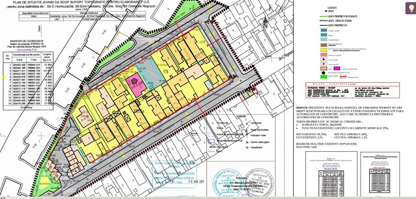 Zona studiată se găseşte in intravilanul municipiului Constanţa. Conform PUG-ului municipiului Constanţa, aprobat prin Hotărârea Consiliului Local Constanţa nr. 653/25.11.1999, a cărui valabilitate a fost prelungită prin HCLM nr. 81/26.03.2013, zona se încadrează în subzona ZRLCM - subzona mixtă cu clădiri construite în front continuu. Zona studiată are o suprafaţă de 5.675 mp. Suprafaţa parcelei care a generat PUZ-ul este de 244,93 mp. Prezentul PUZ şi regulamentul de urbanism aferent nu au drept scop intrarea în legalitate a unor construcţii ridicate fără autorizaţie de construire sau care nu respectă prevederile autorizaţiei de construire. Terenul este proprietatea SC Medical Cermed SRL.