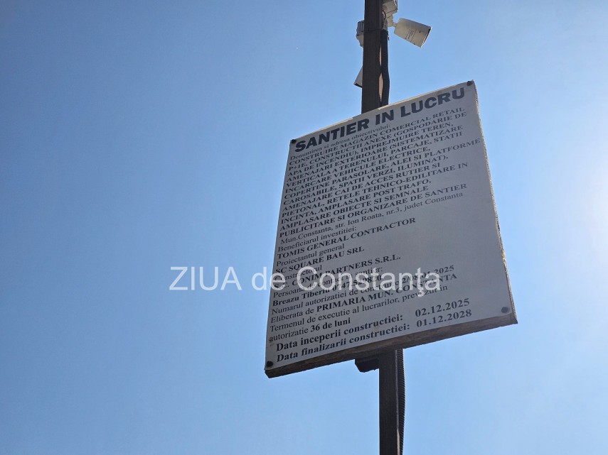 Conform panoului de identificare a investiției amplasat la fața locului (vezi imaginea atașată), autorizația de construire a fost eliberată la începutul acestui an, pe 8 ianuarie 2025, de către Primăria Municipiului Constanța.