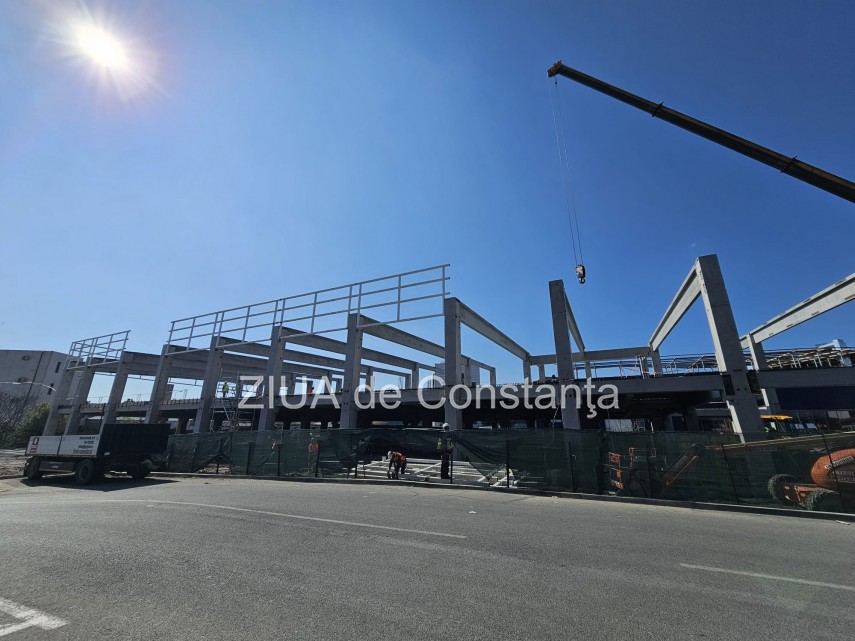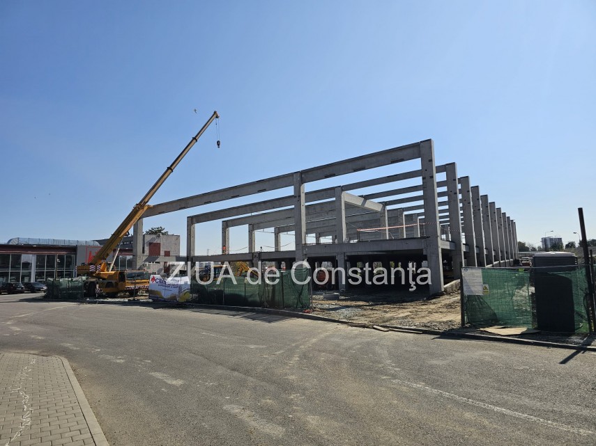 Șantierul este deja activ, imagini recente surprinzând prezența utilajelor grele, inclusiv a unei macarale de mari dimensiuni, care lucrează la ridicarea structurii metalice și de beton a viitorului centru comercial.