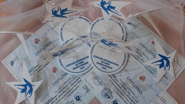 Prof. Alexandra Porumboiu: Cele mai importante premii sunt cele de la Bucureşti, de la Dance World Cup, pentru că acolo concurenţa este foarte mare, vin din toată ţara. Aici se califică doar copiii care sunt pe locul întâi, trebuie să aibă peste 75 de puncte pentru a se califica în finală, ce are loc în fiecare an în altă ţară. Anul acesta are loc la Bucureşti. Ea a luat locul patru la solo dance şi a întrunit şi punctajul necesar pentru a merge în finală, pentru că a primit şi diploma de calificare pentru marea finală. De asemenea, a luat locul doi cu dansul spaniol la grup balet, locul doi cu tarantela siciliană la grup - dans de caracter, locul 1 cu fetele de 12 - 13 ani la dans contemporan şi locul 1 la balet fusion, unde, la fel, a participat cu fetiţe de 12 - 13 ani. Un premiu foarte important a fost locul 1 la solo la balet clasic în urma concursului organizat de Colegiul de Artă din Constanţa, cel mai recent. Este un premiu important, pentru că la solo participă multe fetiţe, cred că şi acum au fost peste 30, a fost o reuşită pentru ea.Simţeai că o să câştigi premiul 1 la acest din urmă concurs?
