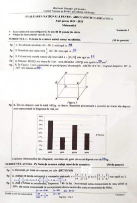 Varianta extrasă pentru examenul de Evaluare Naţională 2023 la matematică a fost cea cu numărul 1.