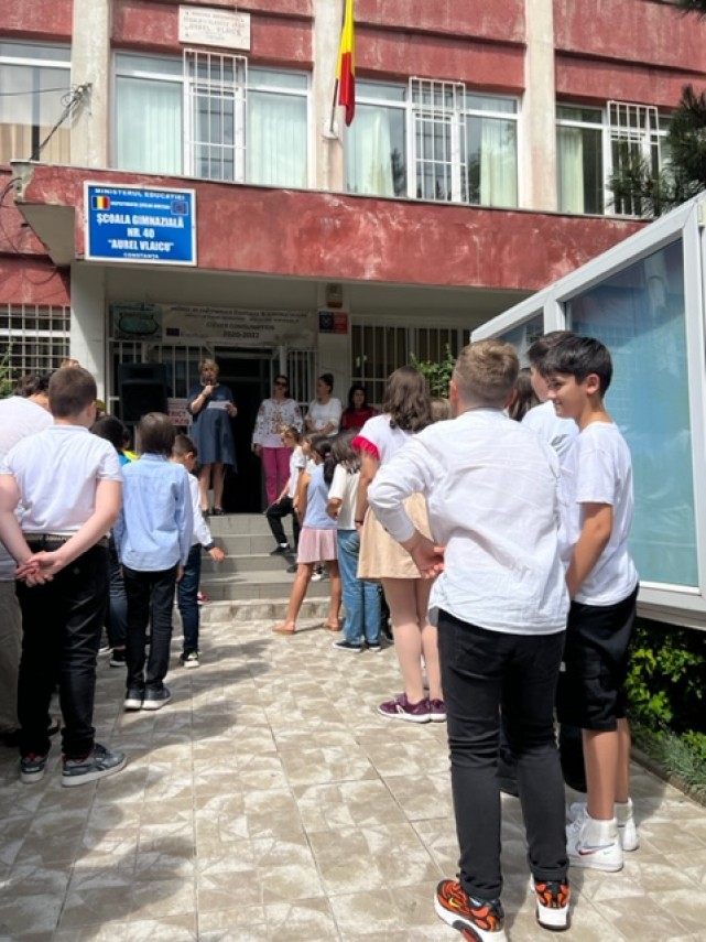 În data de 09 iunie 2022, la sediul Școlii Gimnaziale nr. 40 „Aurel Vlaicu” Constanța, s-a derulat festivitatea de finalizare a Proiectului Erasmus+ „CLEVER CONSUMPTION”, în prezența elevilor claselor primare, a părinților acestora, precum și a cadrelor didactice din învățământul primar care au participat la acest proiect. Cu această ocazie, au ținut alocuțiuni atât directorul, prof. SITA Ana-Mihaela, în numele instituției școlare, cât și prof. RACU Mihaela și p.î.p. ȘOBRANEȚ Carmen-Oana, în calitate de reprezentante ale cadrelor didactice participante la proiect.