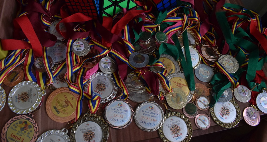 Are acasă o colecţie de 60 de cuburi Rubik, pe care le-a acumulat în cinci ani, adică o investiţie de circa 1.000 de euro, dar şi peste 60 de medalii, obţinute în trei ani de competiţii.