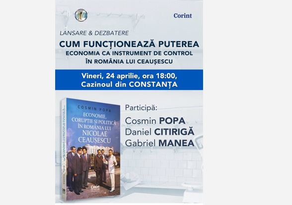 Facultatea de Istorie și Științe Politice (FISP) din cadrul Universității Ovidius din Constanța (UOC) organizează vineri, 24 aprilie 2026, începând cu ora 18:00, la Cazinoul din Constanța, o dezbatere publică urmată de lansarea volumului „Economie, corupție și politică în România lui Nicolae Ceaușescu”, semnat de istoricul Cosmin Popa.