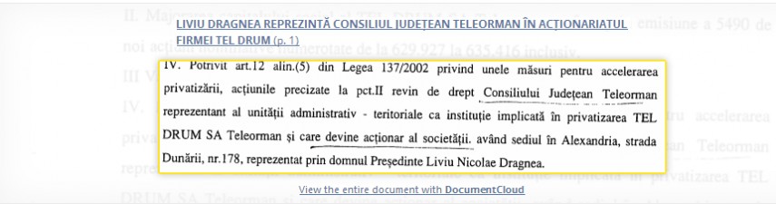 La o lună după privatizare, Liviu Dragnea a transferat de la Consiliul Județean către Tel Drum un alt teren din Alexandria. Astfel, Consiliul Județean a redevenit acționar al companiei, iar Liviu Dragnea a apărut oficial în structura Tel Drum ca reprezentant al instituției. Astfel că, din mai și până în septembrie 2002, Liviu Dragnea și Marian Fișcuci au fost colegi în Tel Drum. Liderul PSD a negat în repetate rânduri ca ar fi avut vreo legătură cu compania prietenului său. Acesta nu a răspuns întrebărilor adresate de reporterii RISE Project.