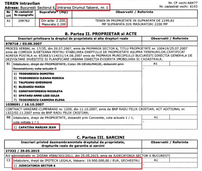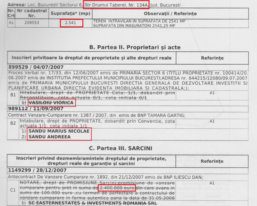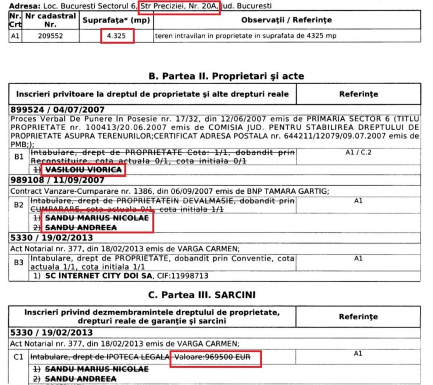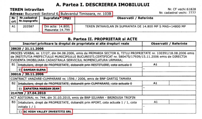 Cartea funciară a terenului situat pe Strada Preciziei 20A lămurește atât traseul pe care l-a urmat această parcelă de pământ, cât și suma cu care a fost înstrăinată, în cele din urmă: 969.500 de euro.
