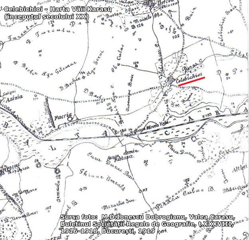 Pe la 1780, călătorul polonez W. Chrzanowski ajungea la Celebi - Kioi, o aşezare de pe lacul cel mare Karasu. Denumirea de Celebi Kioi este probabil de la atributul unui localnic musulman înstărit sau conducător local numit Celebi, de unde şi numele localităţii - „satul lui Celebi”. Celebi reprezintă un atribut care desemnează un om nobil sau un om ales. Locuitorii aşezării se ocupau cu creşterea cailor, aspect observat şi de Camille Allard, în anul 1855, ca remarca pe Valea Kara-su un număr mare de exemplare ale acestei rase. De asemenea, tătarii se ocupau şi de cultivarea pepenilor, în apropierea bălţilor Kara-Su.