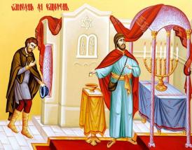 - Uite-l, pe ăsta care a intrat acum cu mine în Templu, cum stă ascuns ca să nu-l vezi! Înghesuit într-un colţ... e şi nemernic şi acum se dă ruşinos. Eu sunt sincer, corect, bun şi nu mă compar cu nimeni.