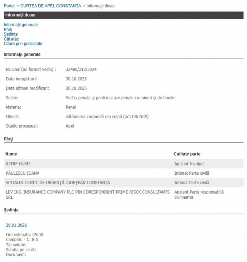 - Dosarul unui accident petrecut în urmă cu mai bine de doi ani ar putea fi soluționat definitiv la Curtea de Apel Constanța la finele lunii ianuarie 2026!