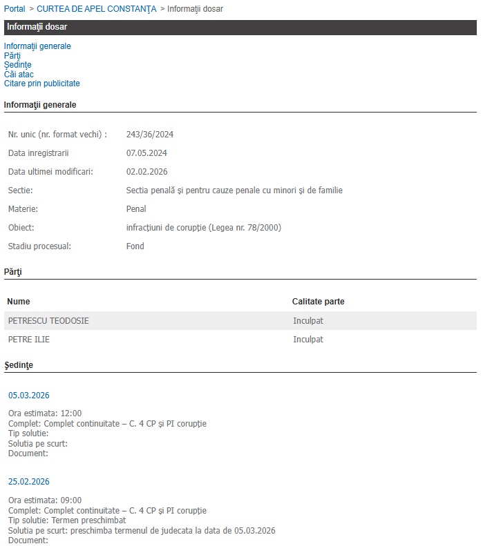 Potrivit datelor publicate pe Portalul Instanțelor de Judecată, termenul de judecată a fost preschimbat la data de 05.03.2026.