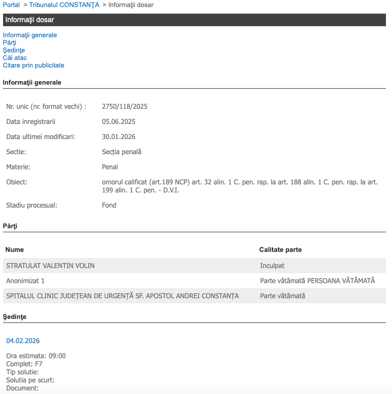 Acesta va fi adus la un nou termen, în cursul zilei de miercuri, 04.02.2026.
