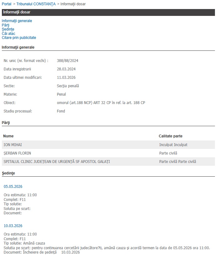 Conform Portalului Instanțelor de Judecată, următorul termen pe fond a fost stabilit pentru data de 5 mai 2026.