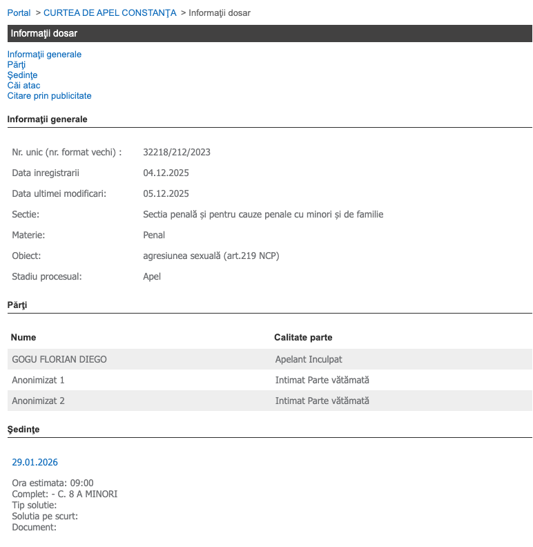 Decizia, nefiind definitivă, a fost atacată la instanța superioară de către inculpat. Curtea de Apel Constanța a stabilit termenul de judecată la finele lunii ianuarie 2026.