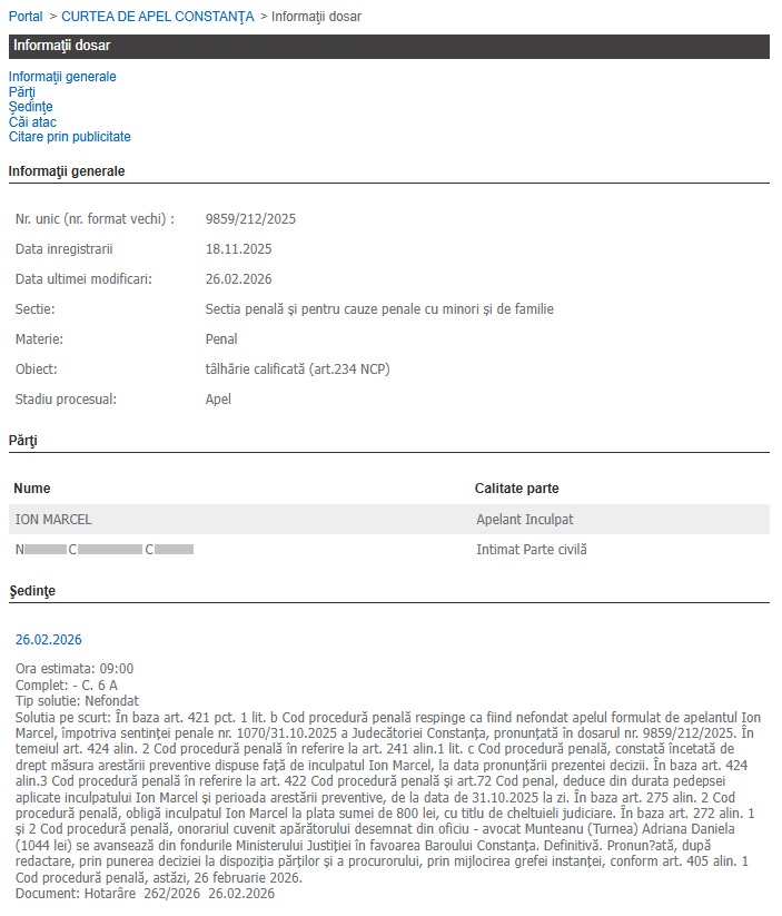 Surse de documentare: Portalul Instanțelor de Judecată și Rejust.ro