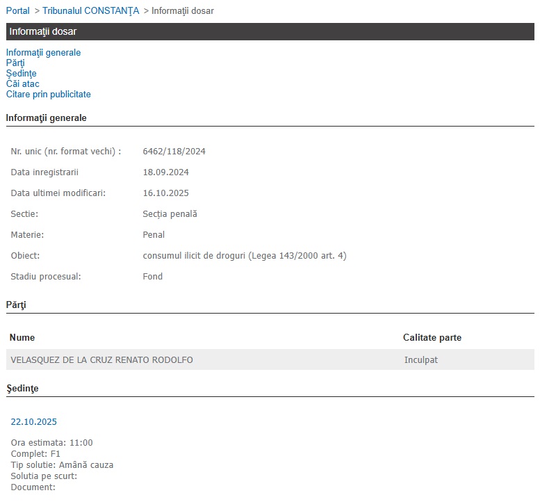 Potrivit Portalului Instanțelor de Judecată, pe fond, cauza a fost amânată de trei ori, inculpatul fiind citat la Tribunalul Constanța miercuri, 22.10.2025.