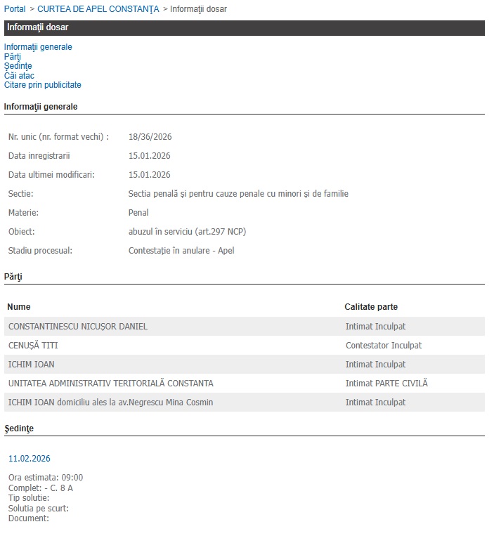 Soluția a fost contestată de către inculpați, iar dosarul a ajuns pe masa magistraților Curții de Apel Constanța, instanță care la data de 07.10.2025, a suspendat cauza.