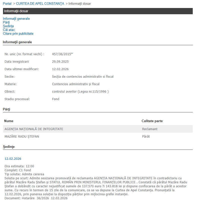 Curtea de Apel Constanța a decis confiscarea a peste 160.000 de euro de la fostul primar Radu Mazăre! Iată de ce (MINUTA)
