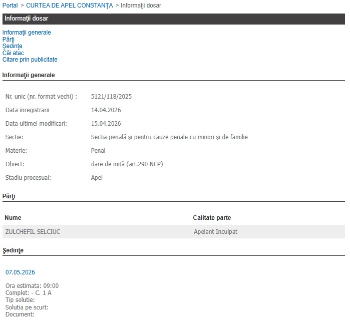 Bărbatul a atacat prima sentință cu apel, iar astfel cauza va fi soluționată definitiv la Curtea de Apel Constanța, instanță care marți 14 aprilie 2026, a stabilit primul termen de judecată la începutul lunii mai, anul curent.