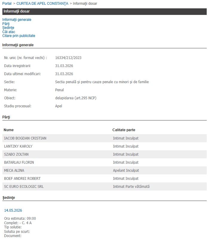 Potrivit Portalului Instanțelor de judecată, cea care a formulat apel este chiar persoana cea din urmă, iar Curtea de Apel a stabilit termen de judecată aproape de jumătatea lunii mai, anul curent.