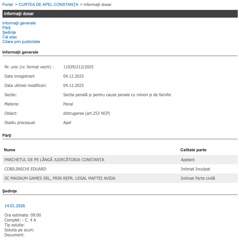 Hotărârea a fost atacată cu apel de către procurorii Parchetului de pe lângă Judecătoria Constanța, iar astfel cauza va fi soluționată definitiv la Curtea de Apel Constanța.
