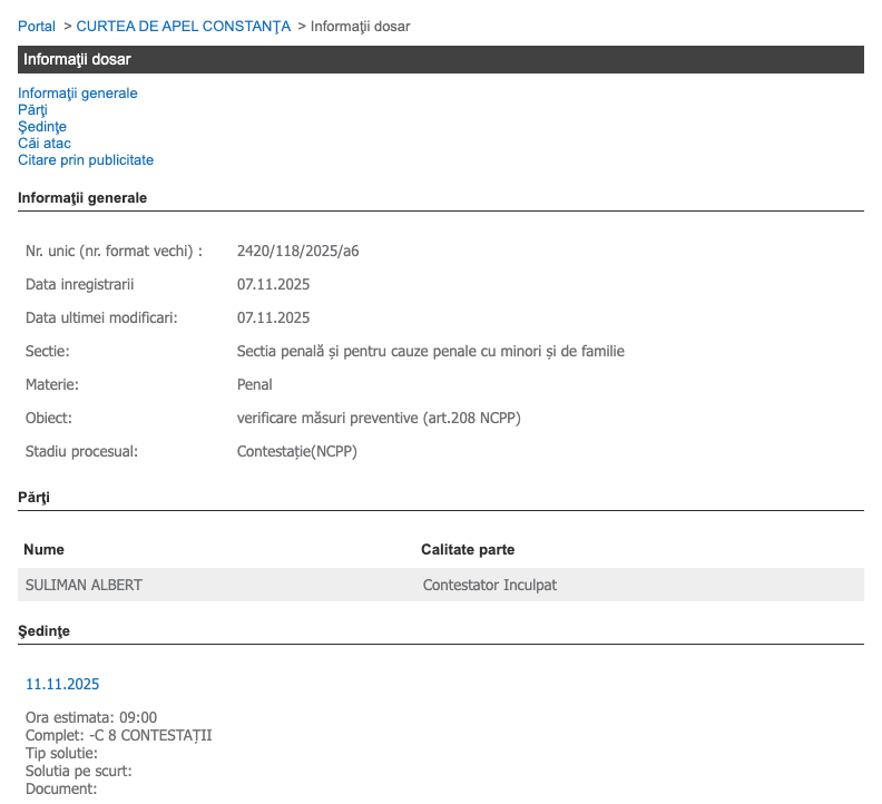 Între timp, la data de 06.11.2025, aceeași instanță a stabilit ca inculpatul să rămână în arest preventiv. Decizia, nefiind definitivă, a fost contestată de inculpat la Curtea de Apel Constanța!
