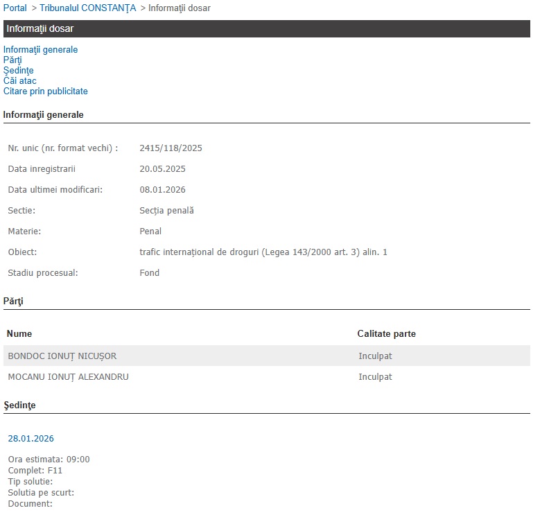 Tribunalul Constanța ar putea anunța, în curând, prima decizie într-un dosar de trafic internaţional de droguri, în care doi bărbați au fost deferiți justiției de către DIICOT.