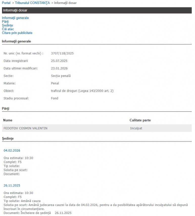 Între timp, în cursul acestei zile, 27.01.2026. Fedotov Cosmin Valentin ar putea afla la Curtea de Apel Constanța dacă va rămâne în arest preventiv, așa cum a stabilit, inițial, Tribunalul. Decizia a fost contestată de inculpat.