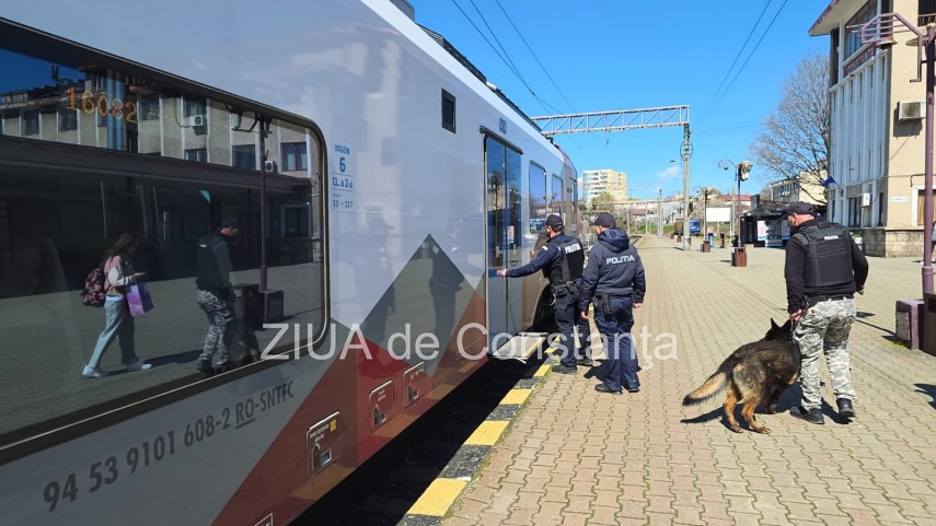 FOTO+VIDEO În Gara Constanța Direcția de Poliție Transporturi, acțiune pentru combaterea faptelor antisociale, în stațiile de cale ferată și în trenurile de călători