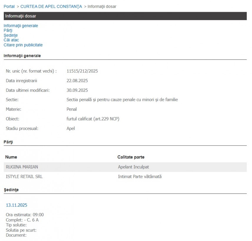 Nemulțumit de pedeapsa primită, inculpatul a formulat contestație la Curtea de Apel Constanța, instanța superioară stabilind ca aceasta să fie dezbătută în cursul zilei de 13 noiembrie 2025. Oricare va fi decizia, va rămâne definitivă!