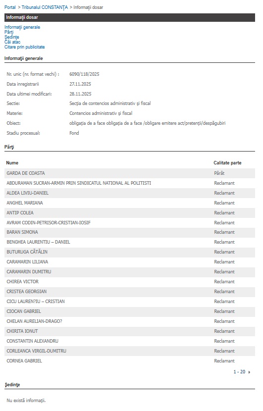 Garda de Coastă Constanța, chemată în instanță, la Tribunalul Constanța, de peste 500 de funcționari!
