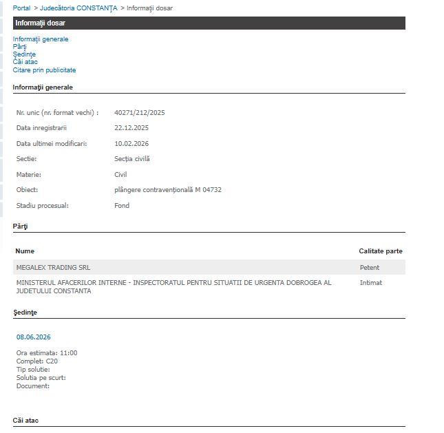 Compania se confruntă cu o vară aglomerată în instanțe, având deja termene fixate în luna iunie pentru contestarea altor sancțiuni primite de la ANPC și MAI-ISU Dobrogea.