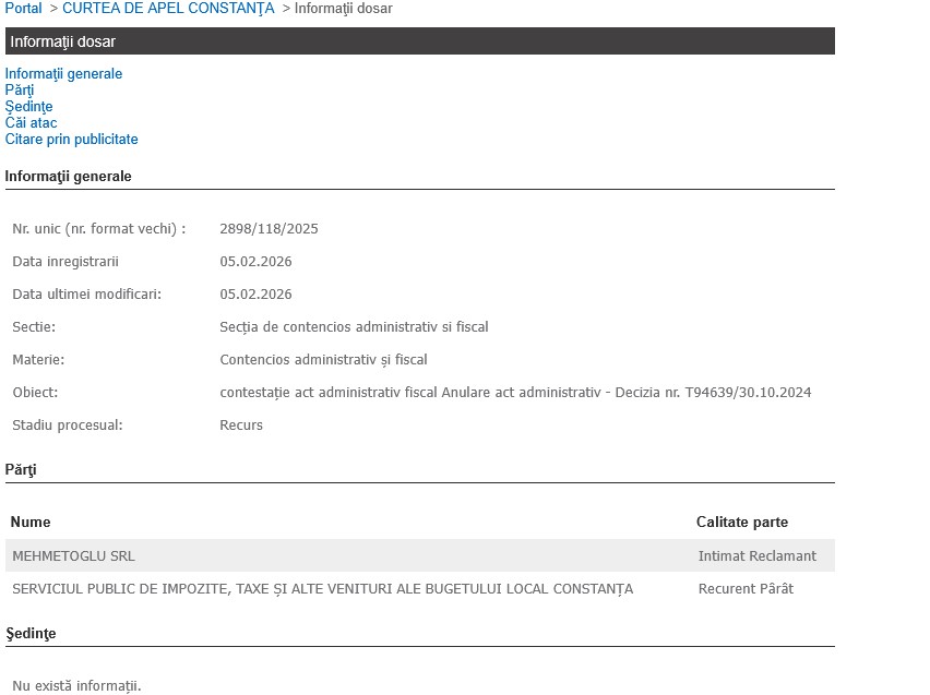 Impozit pe un teren ce nu ar mai fi în proprietatea contribuabilului Procesul dintre SPIT Constanța și Mehmetoglu SRL continuă la Curtea de Apel