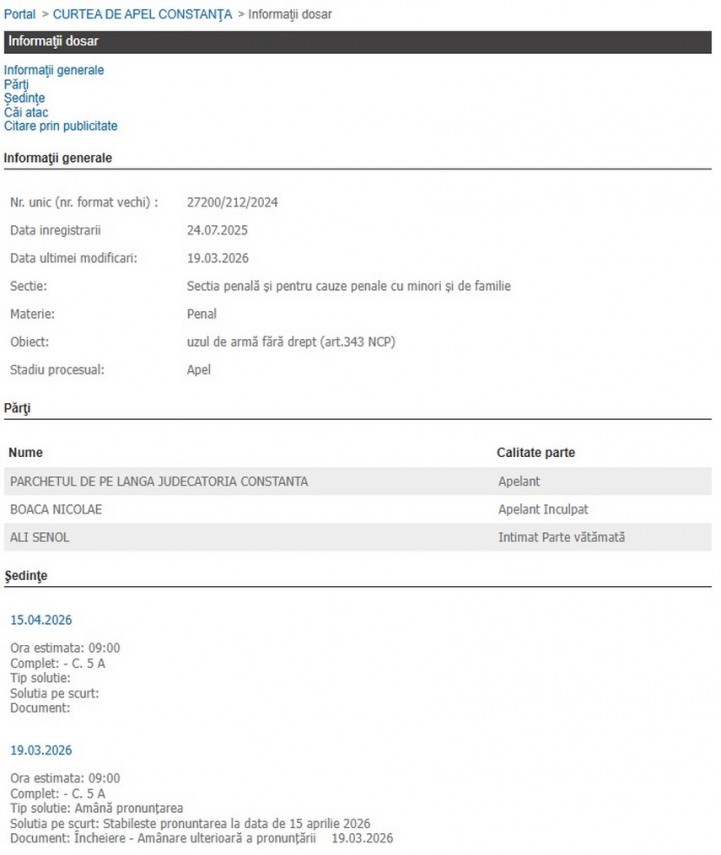 Prima hotărâre a fost contestată atât de Parchetul de pe lângă Judecătoria Constanța, cât și de inculpat, astfel cauza fiind trimisă spre soluționare la Curții de Apel Constanța.Potrivit Portalului Instanțelor de Judecată, după o cauză amânată și alte două amânări de pronunțare, instanța superioară ar putea anunța o decizie definitivă la mijlocul lunii aprilie, anul curent.