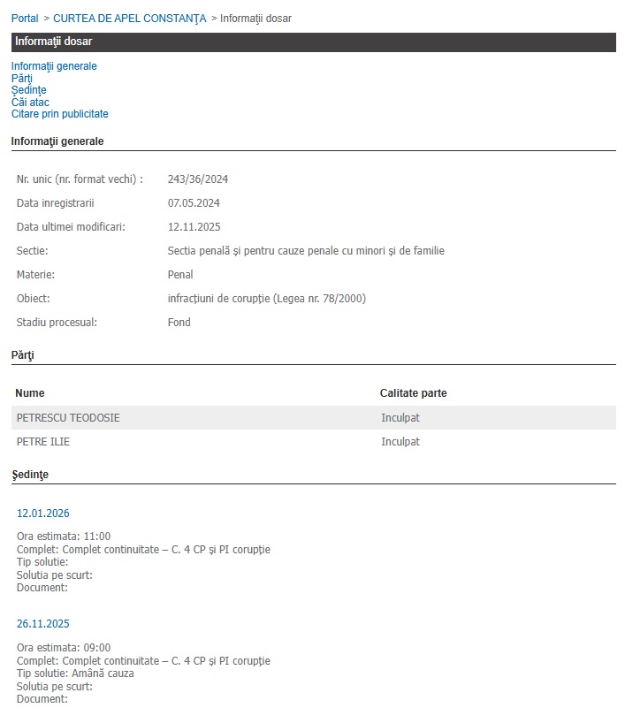 Potrivit Portalului Instanțelor de Judecată, ședința este programată să înceapă la începutul lunii ianuarie, după sărbătoarea Sf. Ioan!