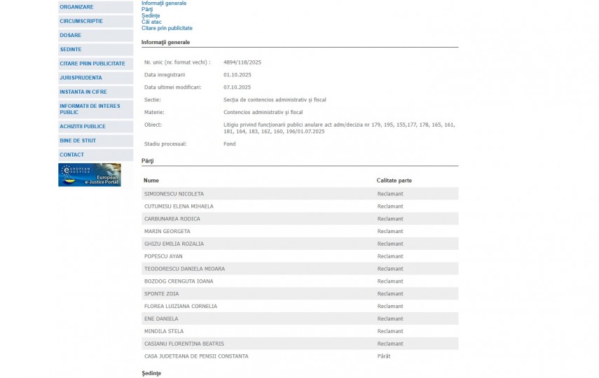 Părți în dosar sunt Simionescu Nicoleta, Cutumisu Elena Mihaela, Carbunarea Rodica, Marin Georgeta, Ghizu Emilia Rozalia, Popescu Ayan, Teodorescu Daniela Mioara, Bozdog Crenguta Ioana, Sponte Zoia, Florea Luiziana Cornelia, Ene Daniela, Mindila Stela, Casianu Florentina Beatris – reclamanți și Casa Județeana de Pensii Constanța – Pârât.