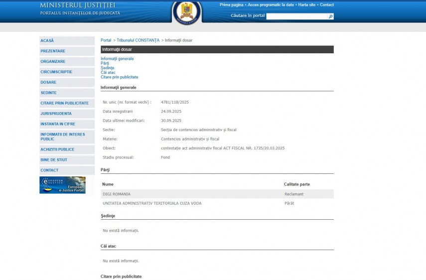 Justiție Constanța: Dispută juridică între DIGI Romania și UAT Cuza Vodă! Dosarul, pe rolul Tribunalului