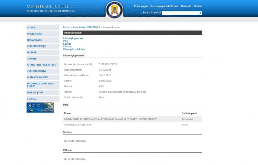 Justiție Constanța: Societatea Pergole Aluminiu din Constanța, acționată în instanță de o firmă din Turcia