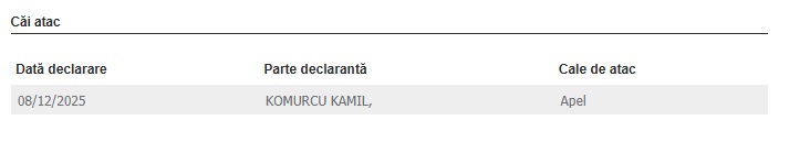 Potrivit Portalului Instanțelor de Judecată, apelul a fost înregistrat luni, 08 decembie 2025.