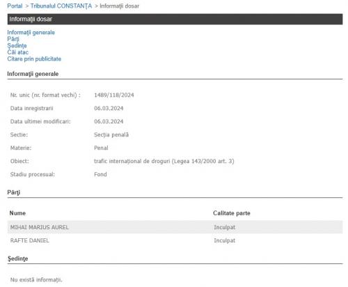 - Tribunalul Constanța a stabilit un nou termen vineri, 03.10.2025, într-un dosar de trafic de droguri, în care Mihai Marius Aurel zis „Pitbull” și Daniel Rafte au fost deferiți justiției!