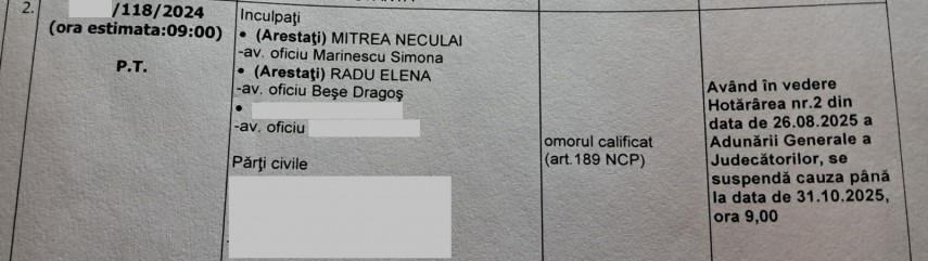 În schimb, aceeași instanță a suspendat ședința de judecată, stabilind un nou termen la finalul acestei luni.