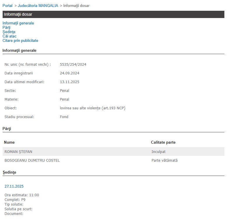 În primă instanță, la data de 3 noiembrie 2025, Judecătoria Mangalia a admis cererea formulată de Dumitru Boșogeanu!