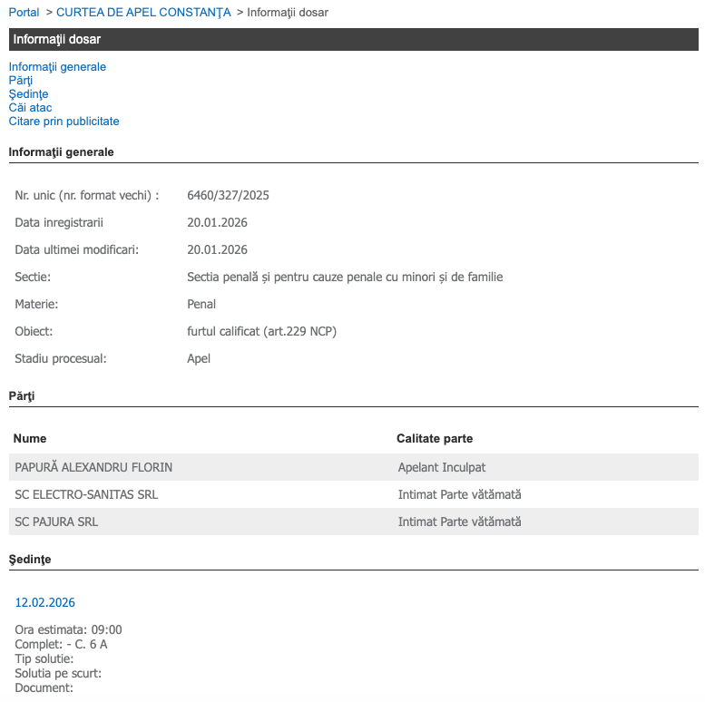 Surse de documentare: Portalul Instanțelor de Judecată și Rejust.ro