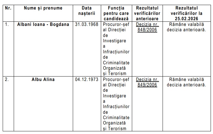 Conform comunicatului emis de CNSAS, alături de candidații înscriși în cursa pentru funcțiile de procuror-șef adjunct în cadrul DIICOT au fost verificați și cei care candidează la alte funcții de conducere în cadrul DNA.